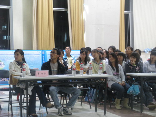 辅导员曾蓓蕾、麻发全老师、学生会团副朱晓雨、主席朱淑君、副主席范辛祥同学以及各部分校级优秀实践队队长和学生会各部部长。麻法全老师首先介绍了一些优秀实践队的情况,让大家初步了解了今年的暑期社会实践成绩。简单的热身活动后便正式进入了活动环节,第一环节的"犹抱琵琶半遮面"中,同学们根据实践队的照片猜想实践活动的内容;接下来的"大珠小珠落玉盘"中,新生们充分发挥创新能力、开拓思维,提出了诸多新鲜的方案,如食品安全、非物质遗产保护、环温州市自行车旅行等。军师队和智囊团成员针对新生的设计方案从可行性、内容、教育意义等多方面进行了点评,既肯定了同学们想法的合理之处,又提出了一些较为中肯的意见,使方案更具可行性。在"曲终收拨当心画"的环节中,实践队队长们通过PPT展示向新生们介绍了各自队伍的实践活动,让新生对暑期社会实践有了更为全面、深刻的认识。