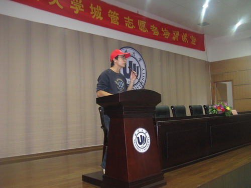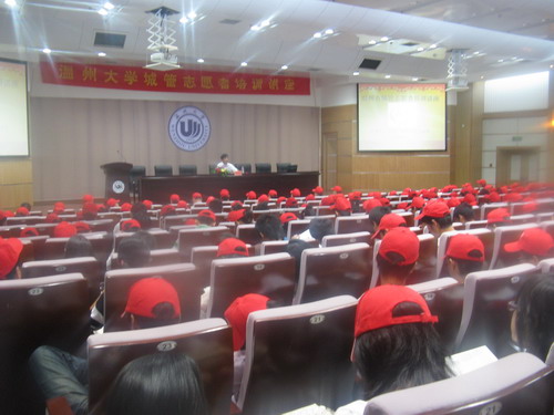 2008年10月26日上午9点,温州大学城管志愿者讲座在北校信息楼报告厅举行。