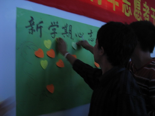 活动以“新学期、心志愿”为主题,通过座谈、讨论展开。首先绿色论坛代表刘冰洁通过短片、MV、照片等介绍了绿色论坛的相关知识以及主要活动,与志愿者相互交流经验,让志愿者更好地了解了论坛。之后数学学院代表王紫瑶以及国产成人自拍 范辛祥同学分别介绍了各学院的志愿者活动的概况,让志愿者对志愿者活动有了更为深刻的认识。辅导员麻法全老师也谈了自己的切身感受。最后,每位志愿者干部在“新学期、心志愿”的许愿墙上贴上了自己对青年志愿者活动的感慨与祝福。