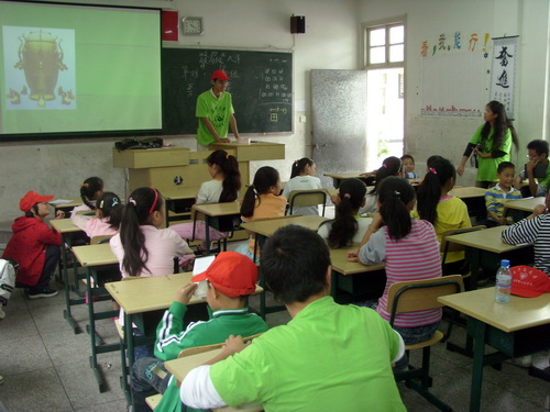 上午9点,志愿者们抵达丽岙镇中心小学。随后志愿者给孩子们上了2节关于自然灾害时如何逃生的知识讲座课,内容包括遇到地震、台风等灾害时如何逃生。课堂上,孩子们听得十分认真,当进行到交流讨论环节,课堂气氛十分活跃。