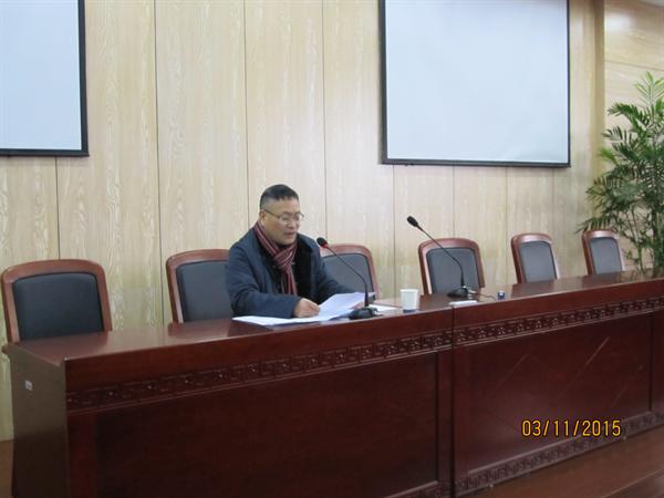 蔡院长首先对蔡袁强校长在学期初全校教职工大会上的工作报告进行了深入解读,对学校今年重点推出的岗位聘任制改革、教职工收入分配补充办法等重大事项进行了通报。蔡院长回顾了学院2014年的工作成绩,他指出学院荣获温州大学教学工作考核和学科科研考核优胜单位是每位教职员工辛勤付出和无私奉献所取得,希望今后再接再厉,争取更大成绩。接着蔡院长结合学院目前实际情况,提出学院今年要进一步提高人才培养质量,切实做好新一轮岗位聘任工作,大力推进本科教学改革,并就创办创意中文实验班重点工作进行了规划和部署。