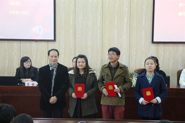 位同学分获二、三等奖和鼓励奖。最后获奖同学代表吴丹辉与大家分享了自己的文学创作经历,同时表达了对前辈