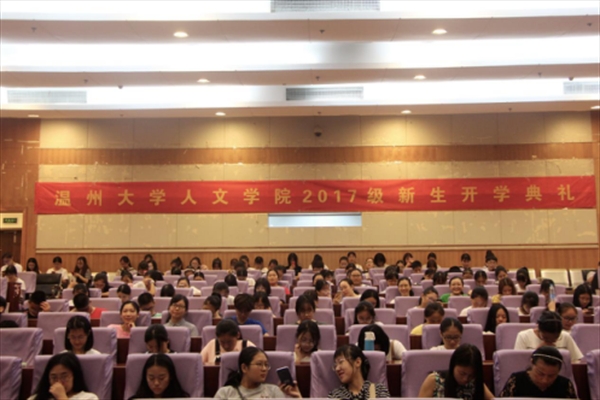 于图书馆报告厅隆重举行了2017级新生开学典礼,国产成人自拍